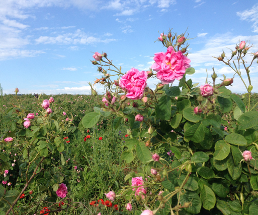 大马士革玫瑰Rosa damascena,蔷薇科蔷薇属(别名:突厥蔷薇的),丛生灌木植物,高约2米,开重瓣花,外形华美、外放绽开,花瓣边缘颜色稍浅,有绸缎般的质感。 保加利亚的玫瑰谷气候条件【阴阳】得宜。全年总雨量不是很高,但在5、6月份,下雨的频率非常高,特别是在每日午后,空气中湿度重。有充足的阳光(花苞特别多),却不是强烈的暴晒型,故所含玫瑰蜡较少,气味敞开、通透,其中牻牛儿醇含量居多)。大马士革玫瑰精油的玫瑰蜡少,低温下呈现漂亮的结晶。 玫瑰精油的化学成分非常复杂,已知成分超过300多种。主要包括香茅醇、苯基乙醇、香叶醇、橙花醇、苯基乙醛、法尼醇(金合欢醇)、玫瑰蜡、微量的壬醇、芳樟醇、壬醛、柠檬醛、香芹酮、乙酸香茅、甲基丁子香酚、丁子香酚。 |