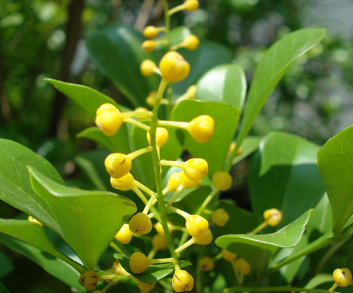 树兰(Aglaia odorata Lour.)是一种楝科米仔兰属的常绿灌木或小乔木,别名米仔兰、树兰(台湾)、鱼仔兰(广西)、暹罗花(广东)、兰花米(四川),碎米兰等。数羽状复叶,互生,叶柄上有极狭的翅,每复叶有3~7片倒卵圆形的小叶,全缘,叶面深绿色,有光泽。小型圆锥花序,着生于树端叶腋。花很小,直径约2毫米,黄色,香气甚浓。 两性花的花梗稍短而粗,种子具肉质假种皮。花期5-12月,花期很长,以夏、秋两季开花最盛。果期7月至翌年3月。 米仔兰原产中国华南地区,夏秋开黄色花,每一枝枝条着生70-100朵小花,因花很小,只有米粒大,被称之为米仔兰。醇香诱人,为优良的芳香植物,开花季节浓香四溢。 树兰花,其出油率为0.4~0.6%左右,常见溶剂萃取净油(原精)。 主要成分:α蛇麻烯、α古巴烯、γ榄香脂烯、β丁香油烃、茉莉酮酸甲酯,杜松醇、喇叭茶醇等; 花语:有爱,生命就会开花 |