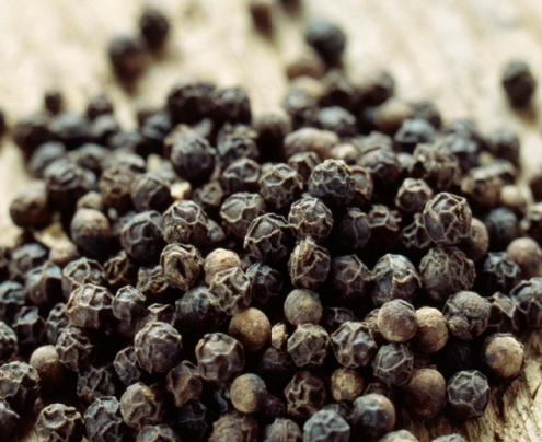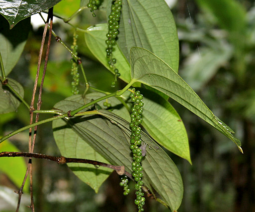 黑胡椒(Black Pepper),是胡椒科的一种开花藤本植物,它的果实在晒干后通常可作为香料和调味料使用。同样的果实还是白胡椒、红胡椒与绿胡椒的制作原料。黑胡椒原产于南印度,在当地和其他热带地区都有着广泛的种植。黑胡椒的果实在熟透时会呈现黑红色,并包含一粒种子;果实在晒干后会成为直径5毫米的胡椒子核果。 黑胡椒,是胡椒科的一种开花木质爬藤植物,它的果实在晒干后通常可作为香料和调味料使用。 【芳香气味】 | ![]() |